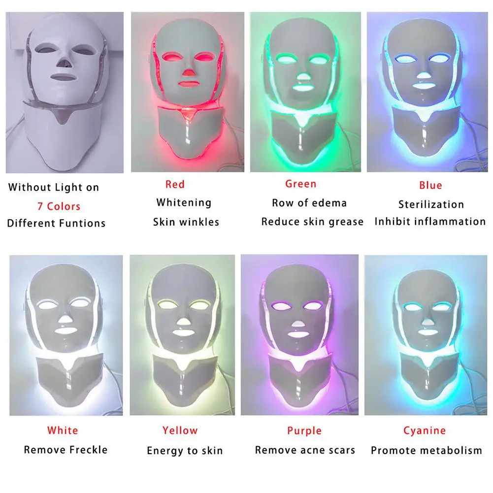 LED 7 Colors Light Photon Face Neck Mask Rejuvenation Skin Therapy Anti Wrinkles Face care tool