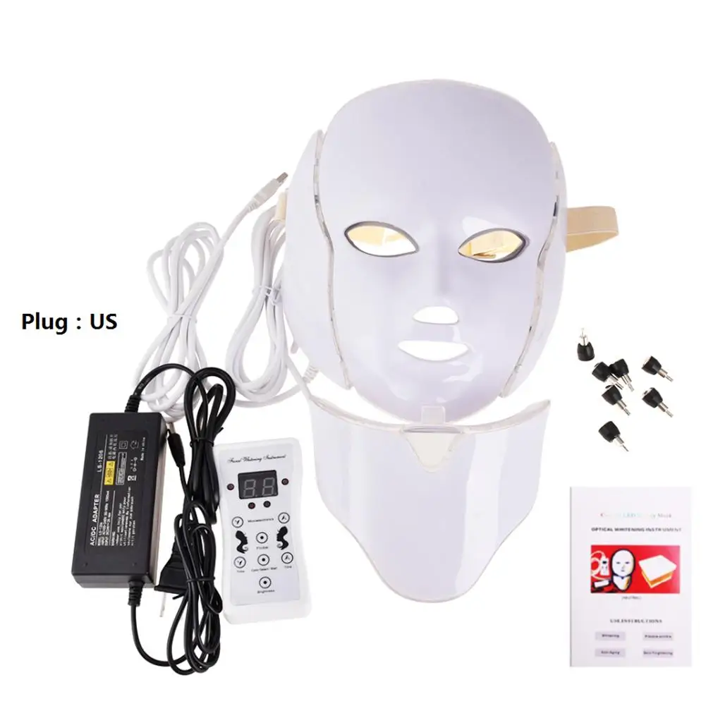 1 Set of LED Light Facial Mask Korean Photon Therapy Photo-rejuvenation Spectrum Machine Beauty Instrument with Neck Mask Set