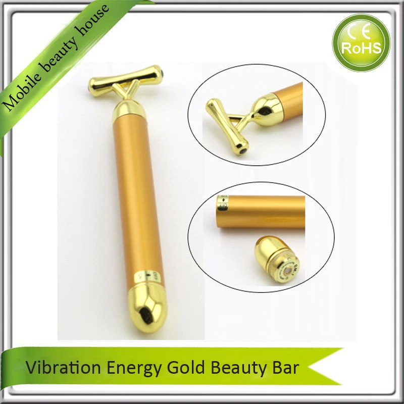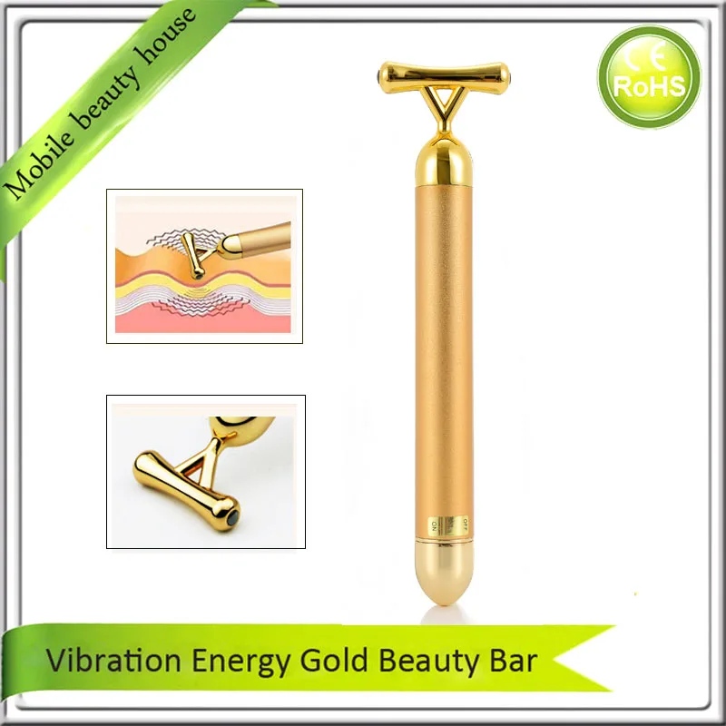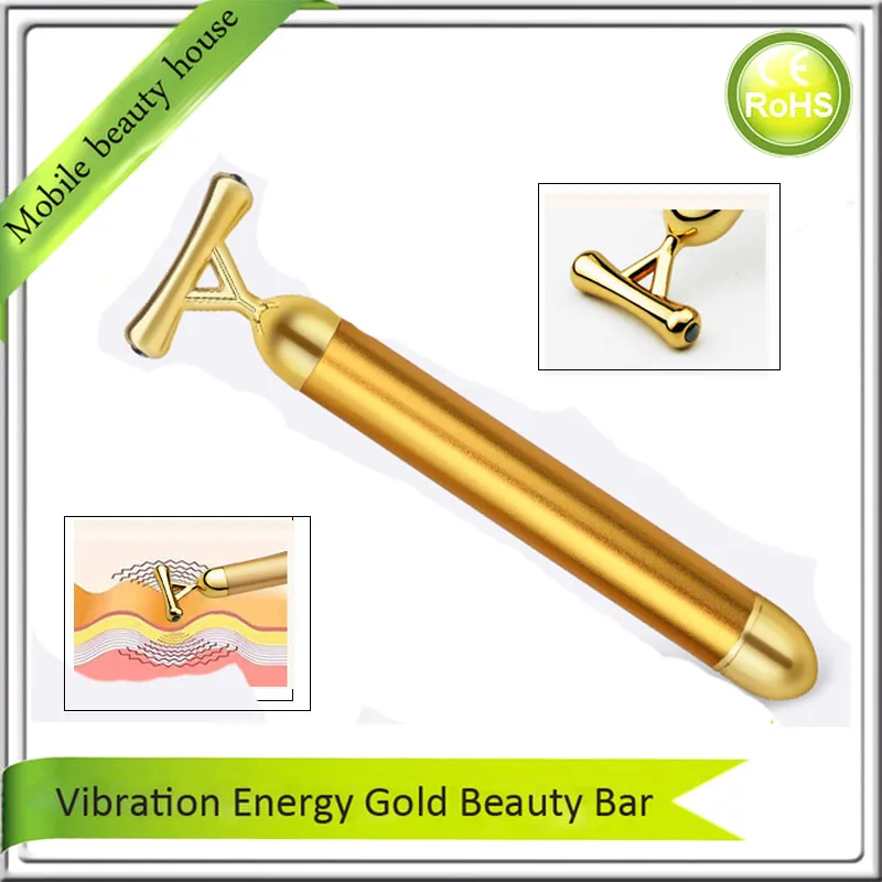 Face Toning And Lifting Tightening Slimming Y Shape Vibration Facial Stick Roller Massager 24K Gold Energy Beauty Bar