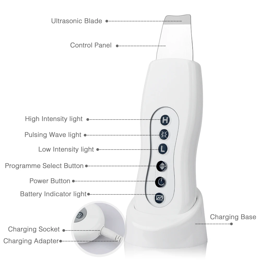 Ultrasonic Face Skin Scrubber Blackhead Acne Removal Facial Vibration Massager Peeling Shovel Exfoliator Clean Machine Microderm