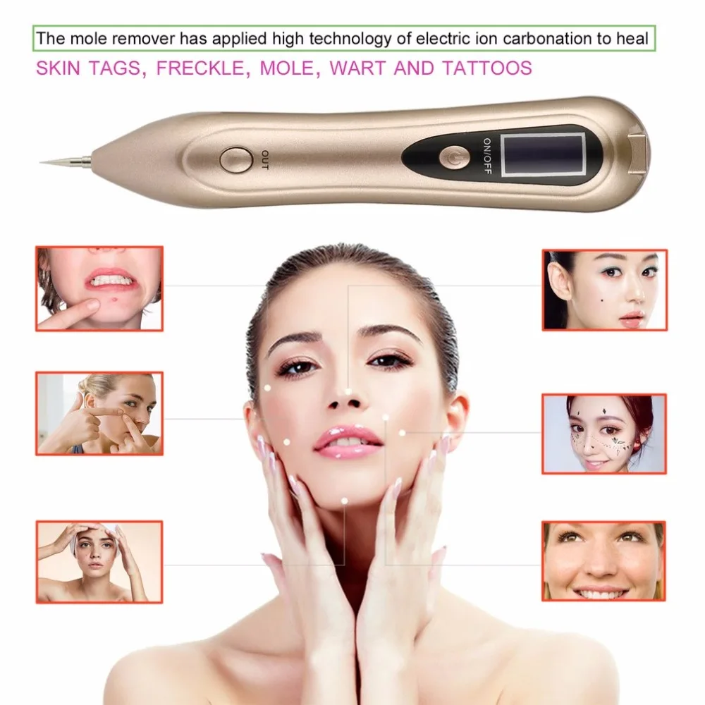 13% OFF!! Portable Sweep Spot Removal Pen Laser Mole Freckle Removal Tool Remover Eraser Pen LCD Display USB Rechargeable facial massage