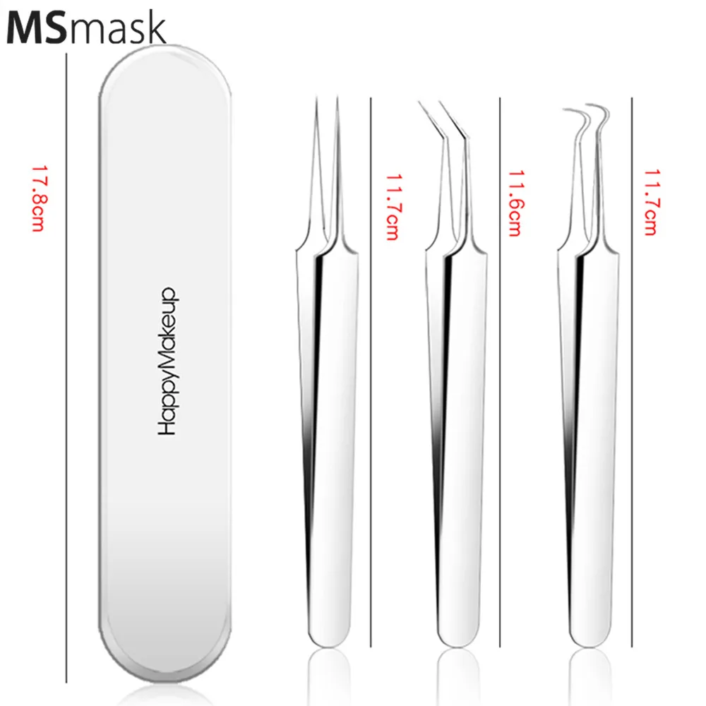 3pcs/Set Safety Acne Needle Tweezer Removal Pimple Extractor Stainless blackhead remover black dots skin tag cleaner clean face