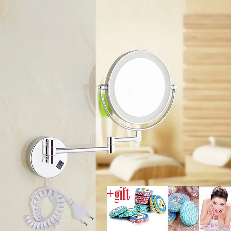8"LED light Wall Mounted Round Magnifying Mirror LED Makeup Mirror battery make up lady's private mirrors for compressed towel