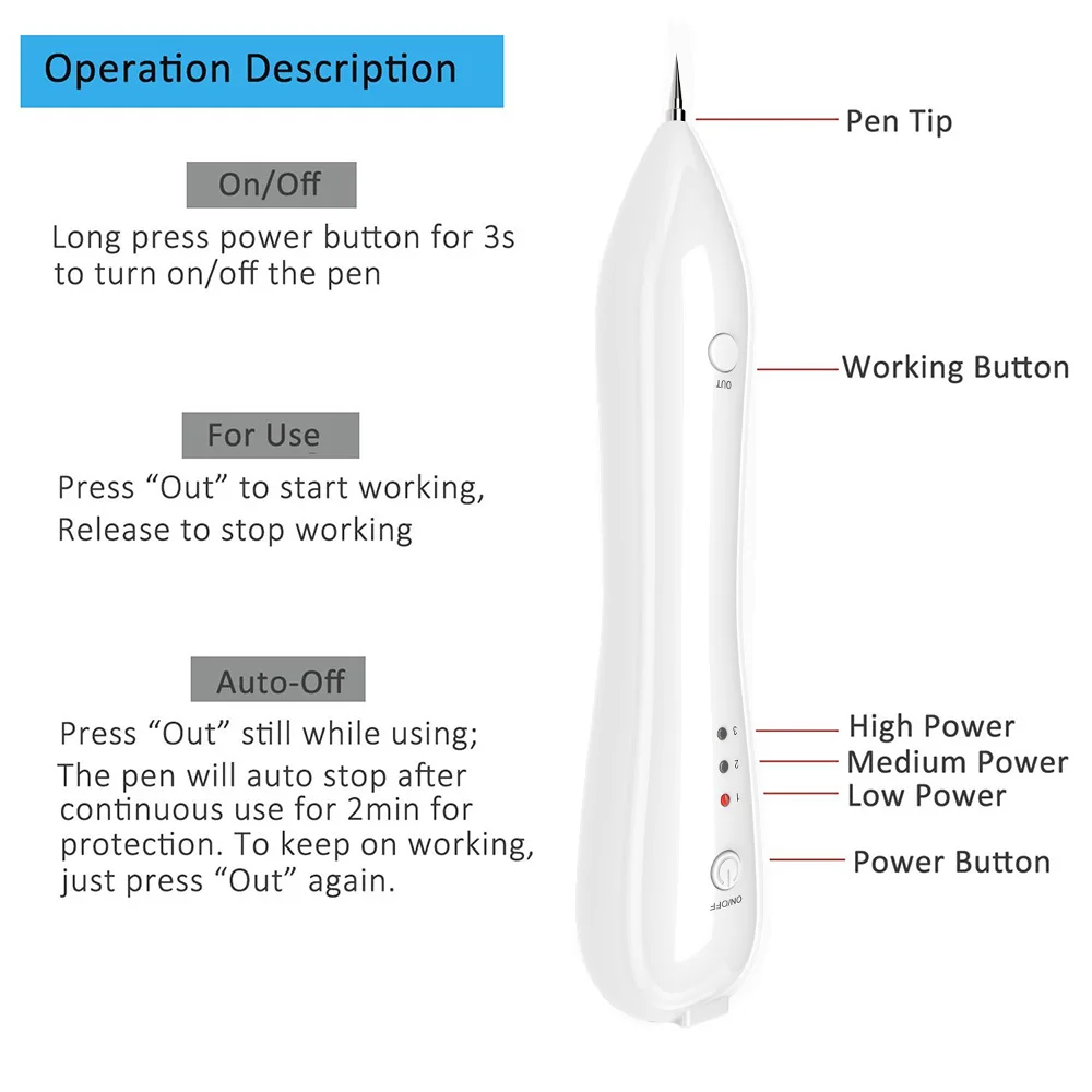 Plasma Pen Freckle Tattoo Remove Laser Beauty Care Tool Laser Skin Facial Remover Tattoo Portable USB Rechargeable Laser Tag Set