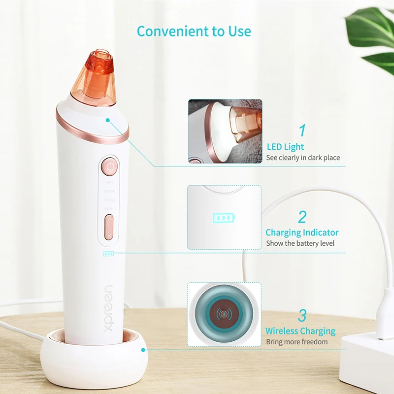 Vacuum Blackhead Remover,Xpreen Pore Vacuum Cleaner Electric Blackhead Vacuum Suction Tool with Led Light Wireless Charge Base