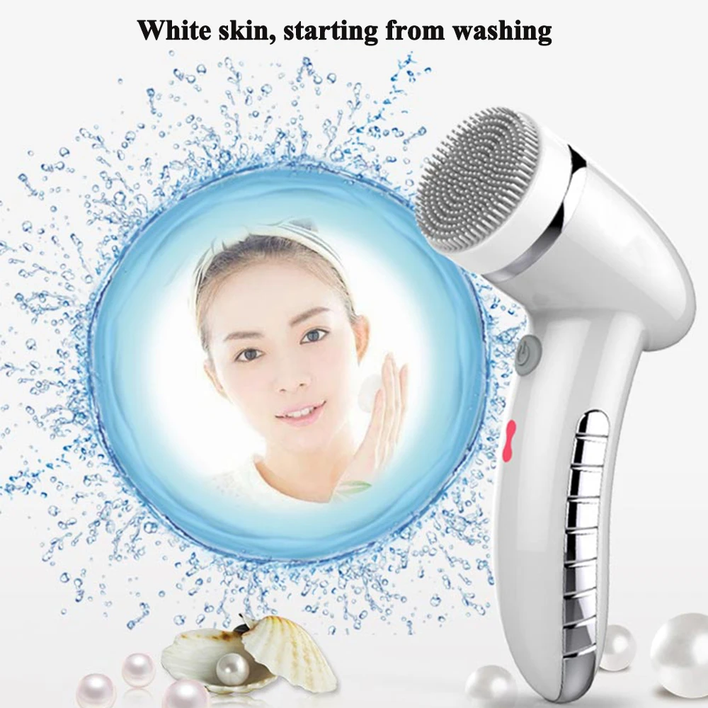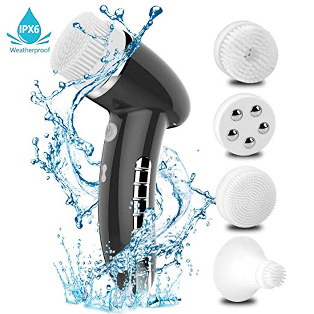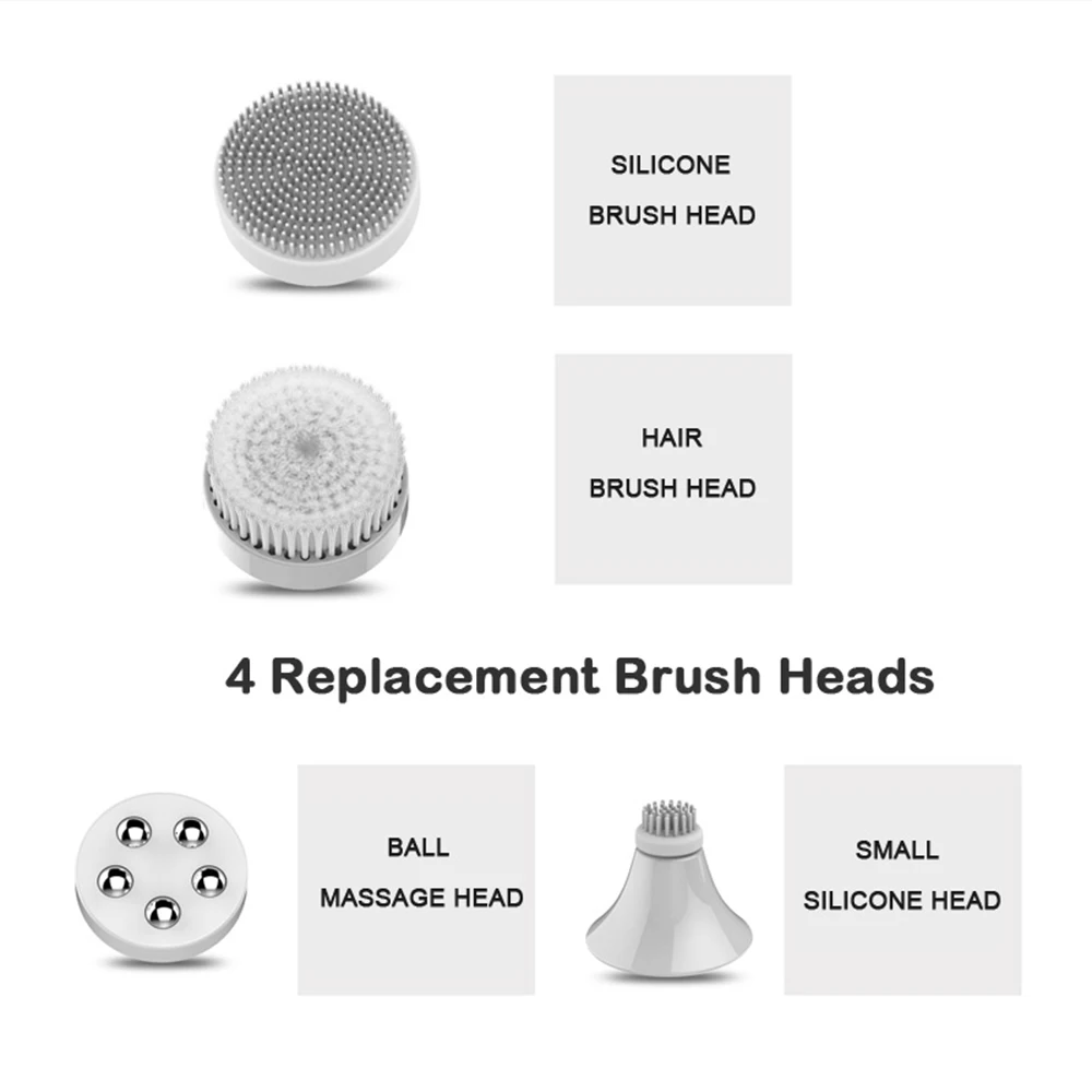 Facial Cleansing Brush Sonic Vibration Mini Face Cleaner Silicone Deep Pore Cleaning Electric Waterproof Massage with 4 Heads