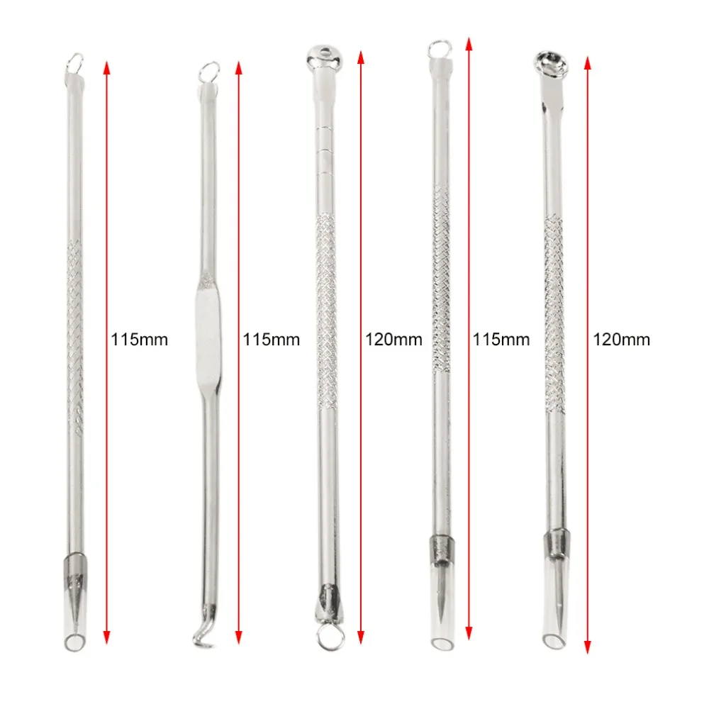 5pcs/set Stainless Steel Acne Needles Pimple Remover Skin Cleanser Blackhead Remover Needles With Mirror