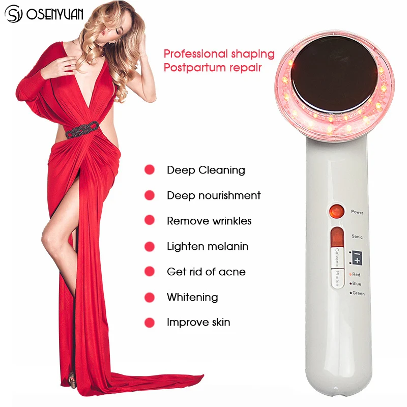 Multifunctional Ultrasonic Facial Beauty Instrument LED Photon Massager Face Lifting Tightening Rechargeable Shrink Pores Tool only $40.48