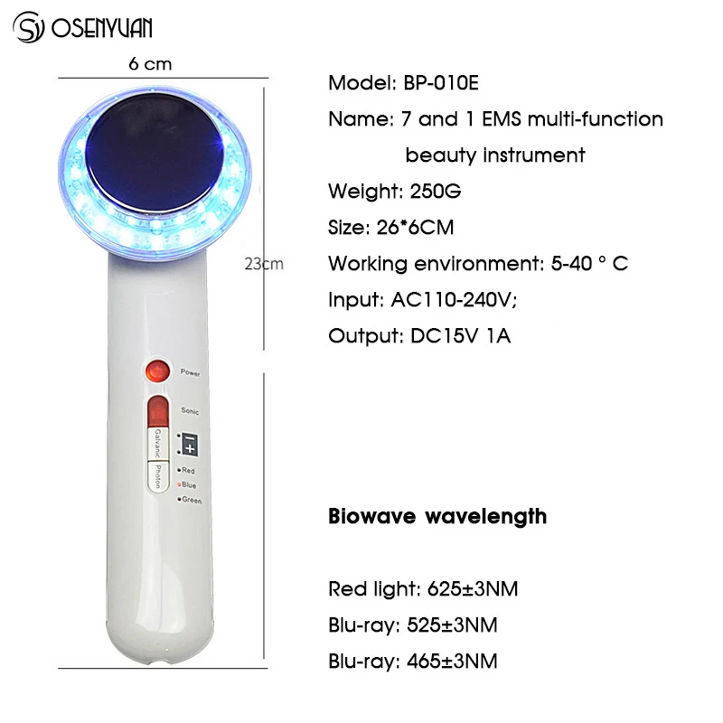 Multifunctional Ultrasonic Facial Beauty Instrument LED Photon Massager Face Lifting Tightening Rechargeable Shrink Pores Tool