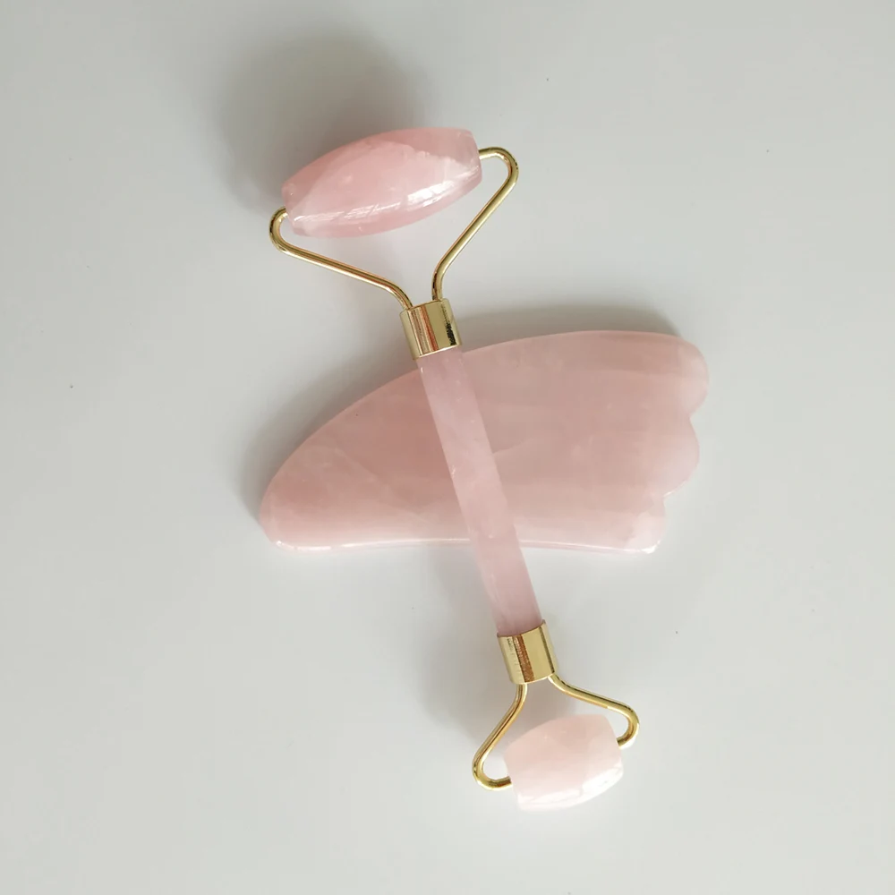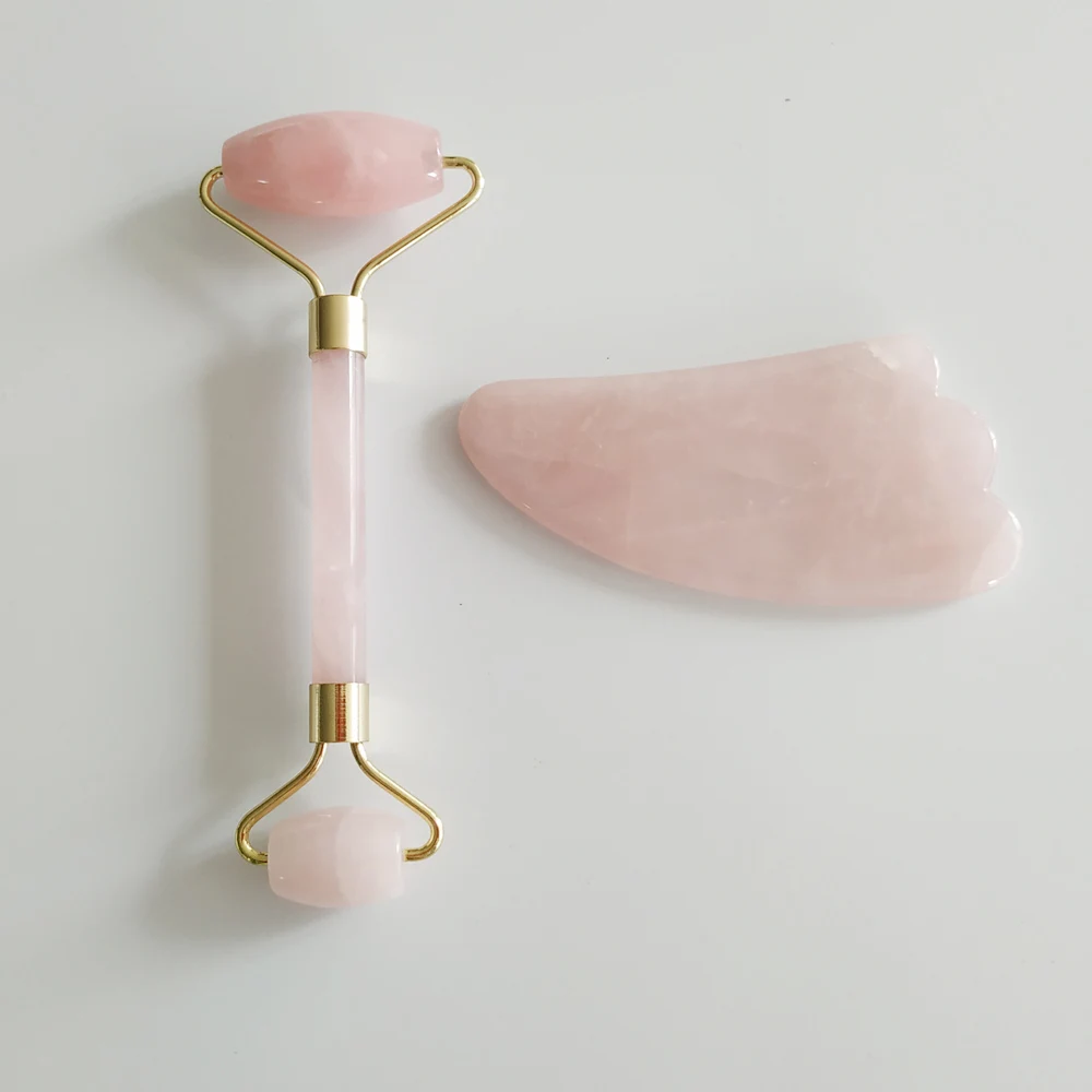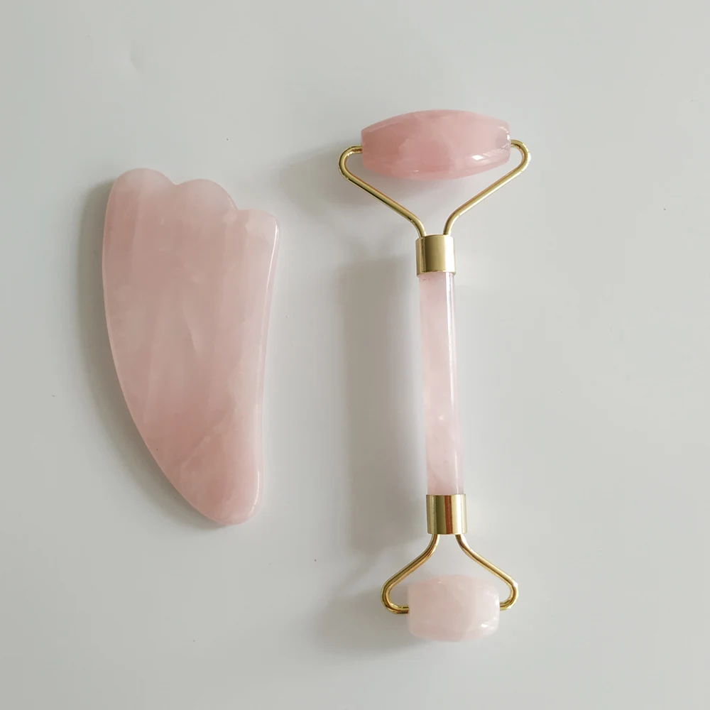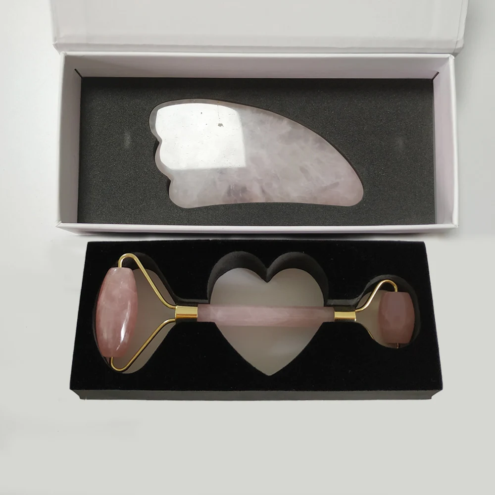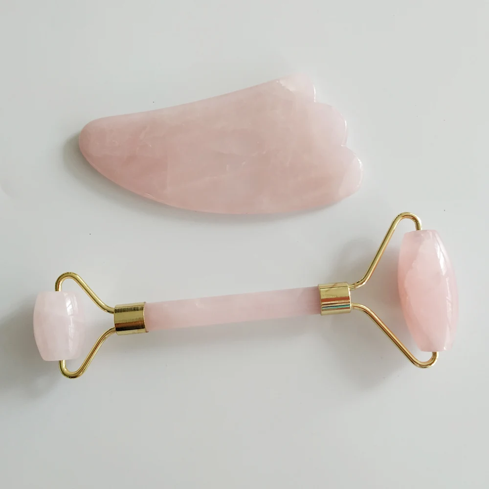 Natural Rose Quartz Roller Jade Roller Slimming Face Massager & Gua Sha Set Scraping MassageTools Body SPA Massage & Relaxation