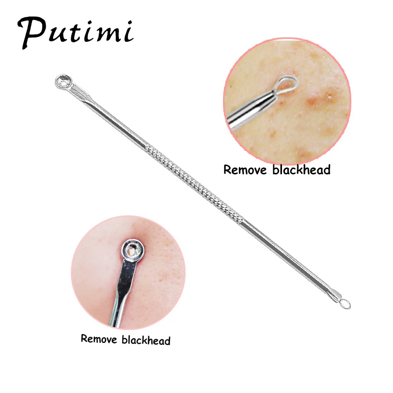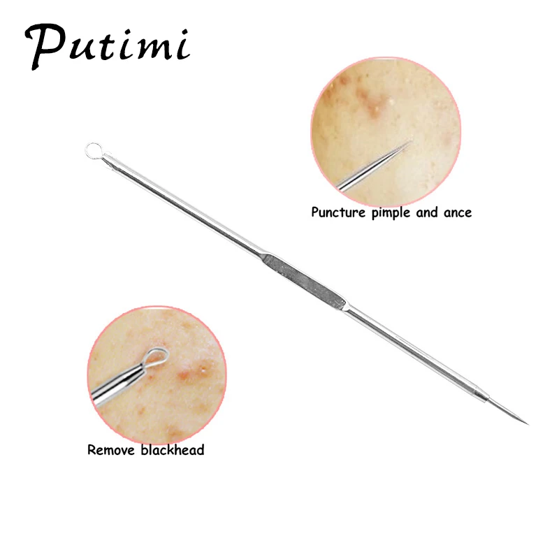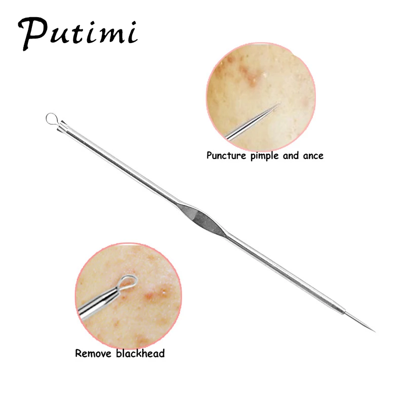 Putimi 7Pcs Stainless Steel Blemish Blackhead Remover Extractor Tool Comedone Acne Needles Pimple Removal Spoon for Face Clean