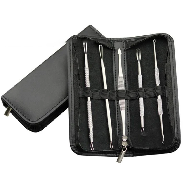 New Arrival 5pcs Face Care Skin Remover Kit Blackhead Blemish Acne Pimple Extractor Stainless Needles Tool Kit Face Cleanser