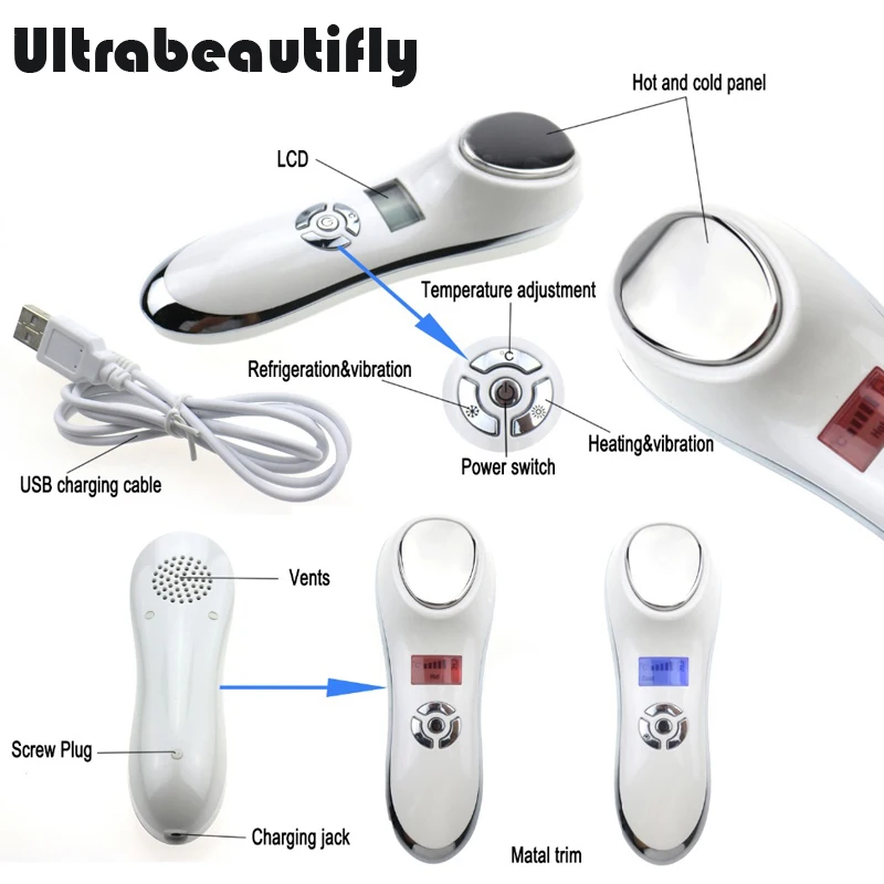 Portable Home Use Heating Cooling Sonic Vibration Skin Pores Minimizer Facial Moisturizing Edema Wrinkle Removal Beauty Machine